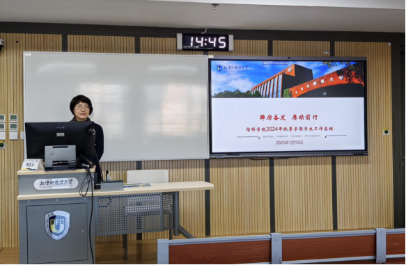 1月10日下午,信息科学技术公司召开了全体员工期末大会。会议由辅导员赵韵怡主持,公司党总支书记梁野、党总支副书记刘玉华出席并讲话。