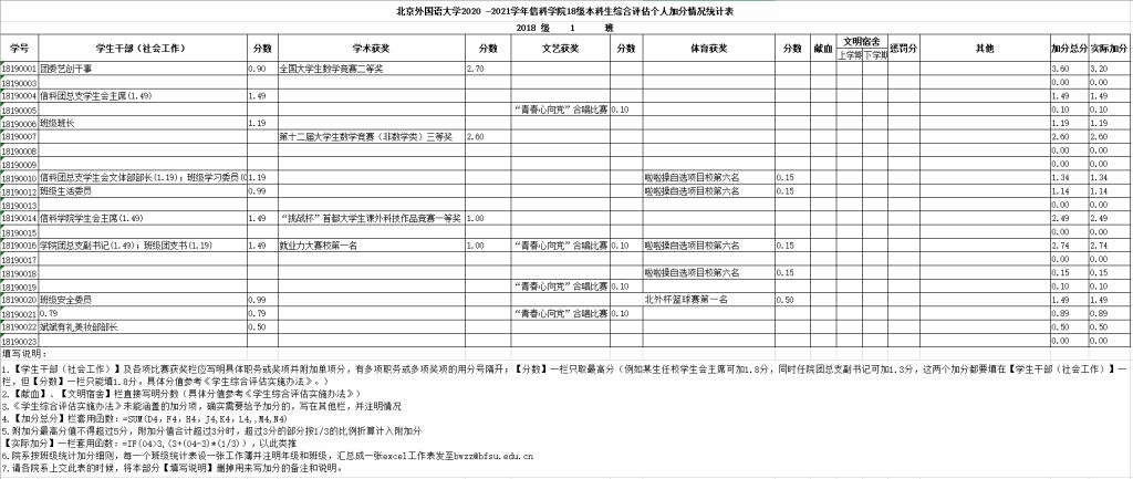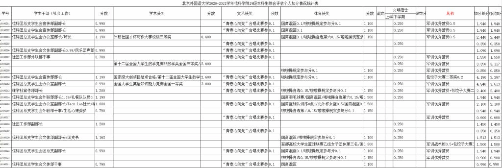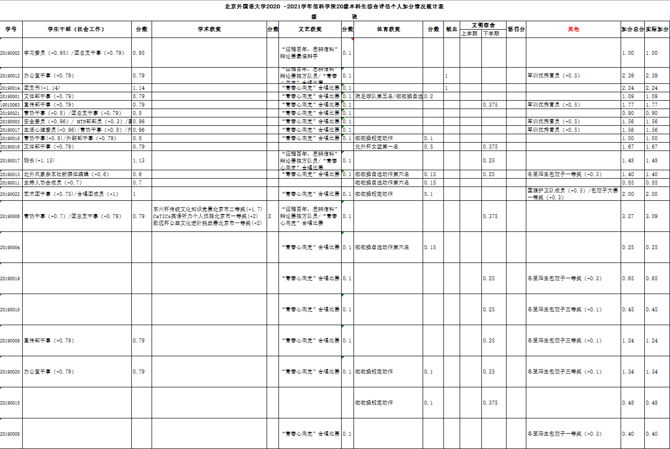 北外2020-2021学年本科生综合评估个人加分名单公示